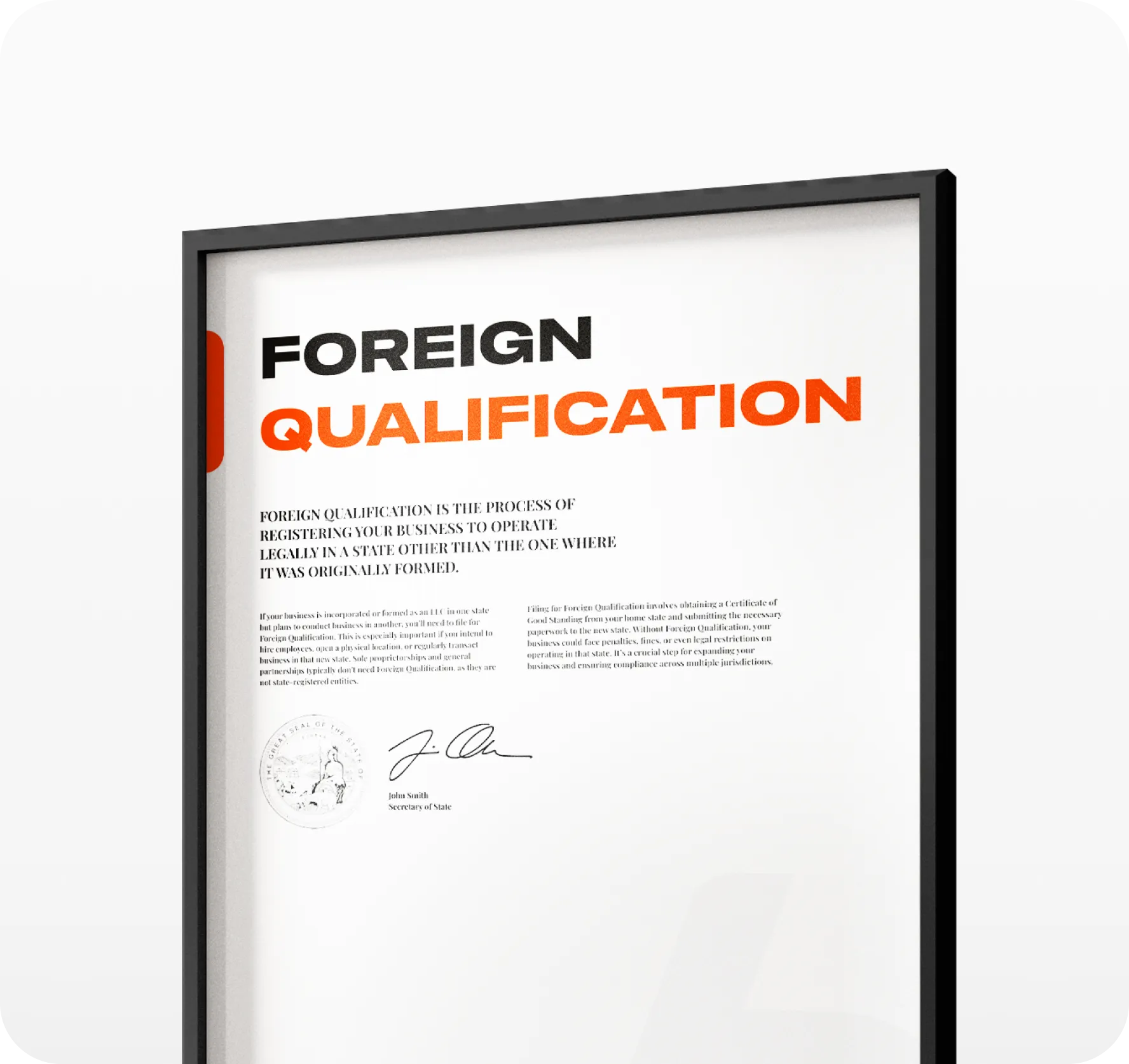 When you file a foreign qualification, you receive a Certificate of Authority that gives you legal authority to do business in that state. Without it, you risk fines, loss of access to that state's courts, and back taxes and fees.